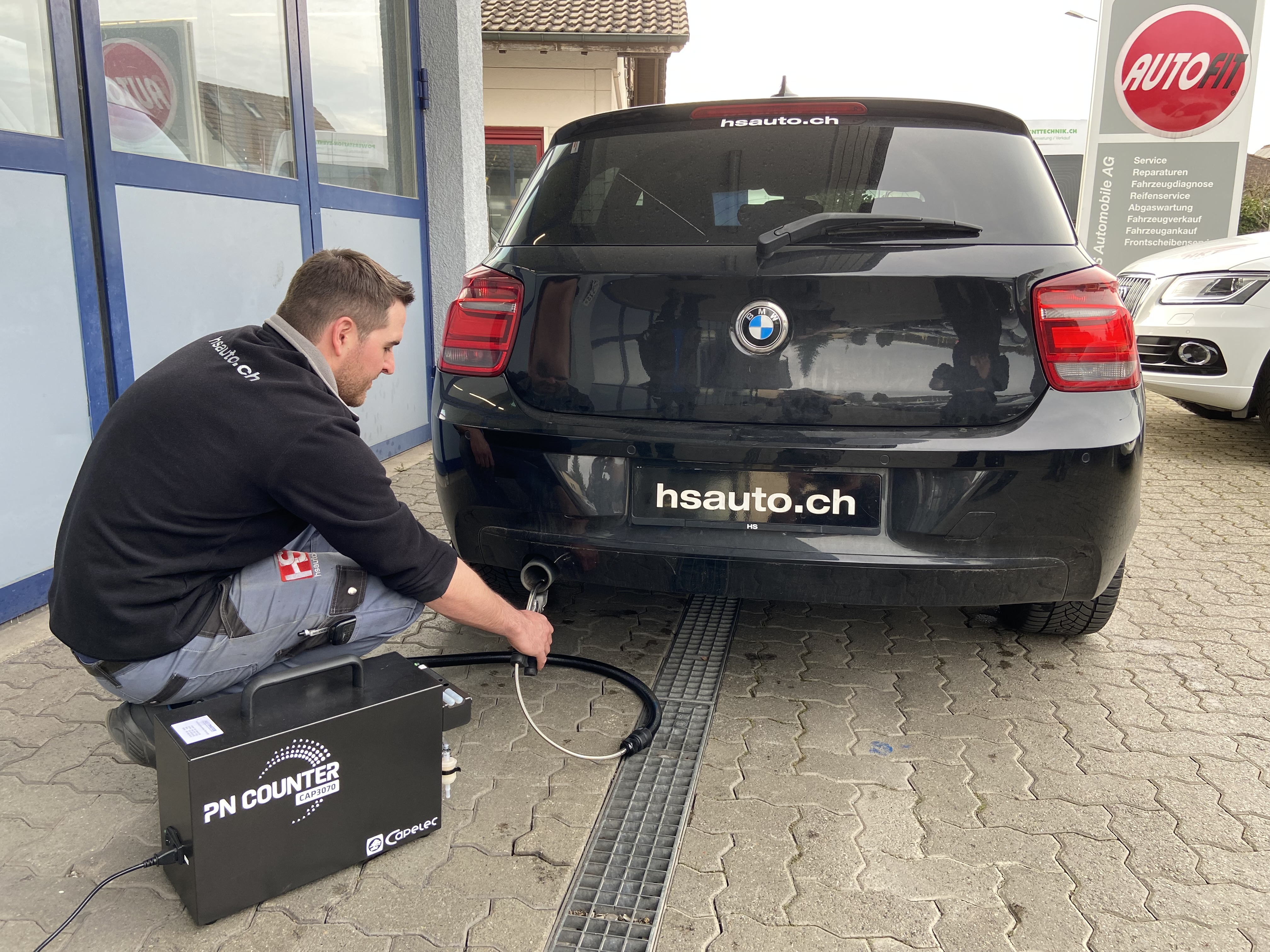In der Schweiz wurde anfangs 2023 neu die Partikelanzahl-Messung für Fahrzeuge und Maschinen mit Strassenzulassung eingeführt. Das Strassenverkehrsamt prüft die Werte bei Fahrzeugen ab Emissionscode B5B (Dieselmotoren) ab Jahrgang 2013.